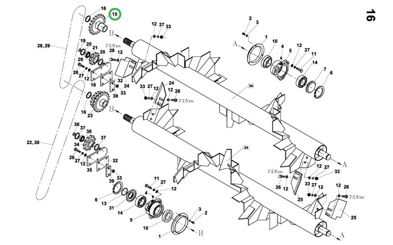 Řetězka kompletní pro rozemtadla RA-80 a RA-100. Řetězka má 21 zubů a 16 zubů.