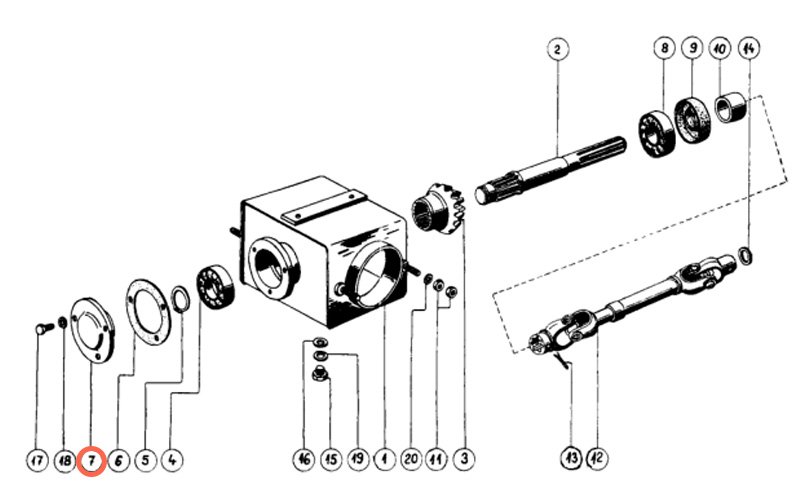 Rozvodová skříň pro rozmetadlo RUR-5. Rozvodovou skříň je možné použít i u stroje RU-5.
