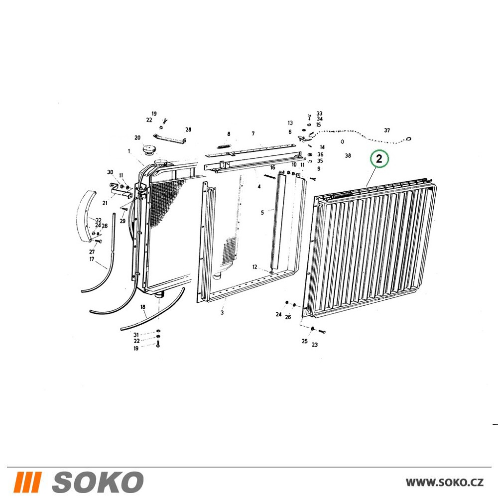 Záclona chladiče - chladící radiátory pro sklízecí mlátičku Fortschritt E 512. Kompatibilní se strojem Fortschritt E 514. Katalogové číslo: 4221610671.