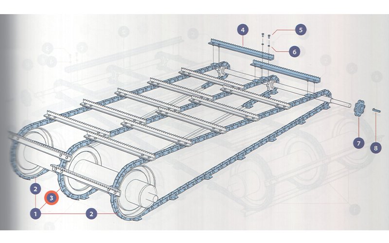 Samostatný středový řetěz s unašeči na lištový dopravník kombajnů New Holland